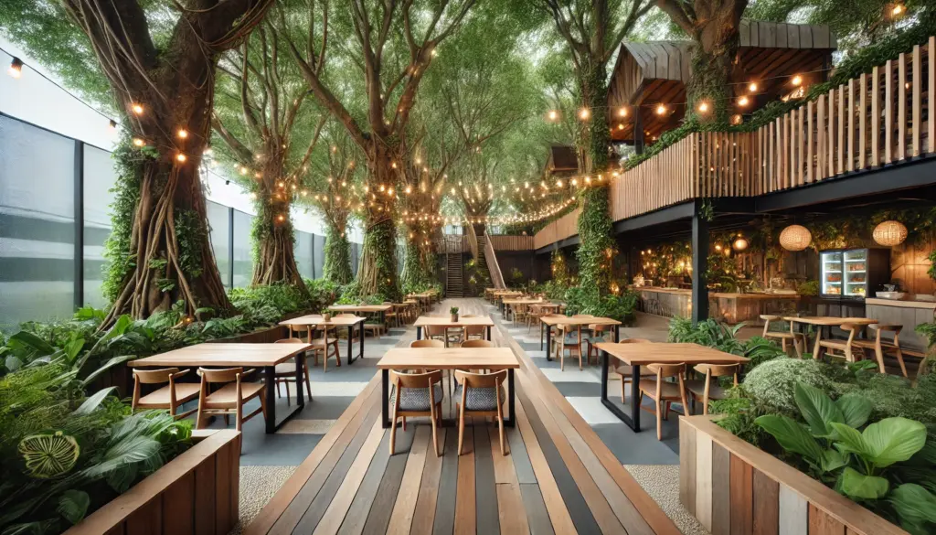 都会の喧騒を忘れさせる癒しのフードコート。